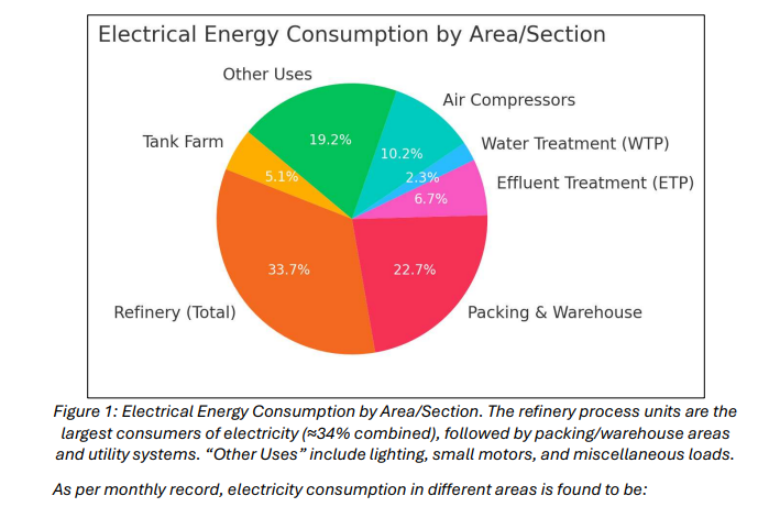 The facility included multiple energy-intensive operations such as crude oil refining, deodorization, fractionation, hydrogenation, tank farm heating, packaging, and extensive utility systems including boilers, chillers, compressors, pumps, and vacuum systems. Energy costs represented a significant portion of the total manufacturing cost, making efficiency improvement a strategic priority.