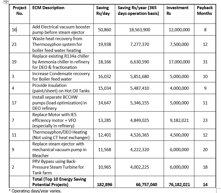 The audit identified 35+ energy conservation opportunities, delivering a total savings potential exceeding ₹9 crore per year, with an average payback period of approximately 12 months.